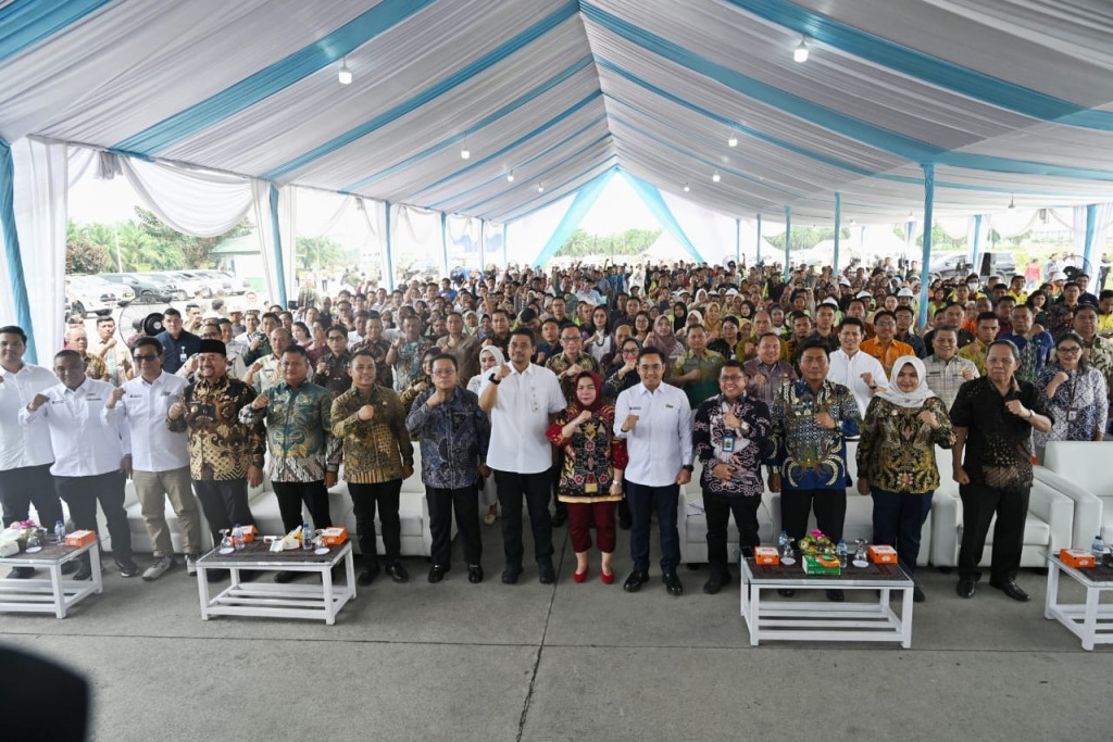 PALAS.WAHANANEWS.CO, Simalungun - Pj Sekretaris Daerah Kabupaten Padang Lawas (Sekdakab Palas) Panguhum Nasution bersama para OPD terkait menghadiri acara penyerahan Simbolis Kartu BPJS Ketenagakerjaan bagi Pekerja Rentan se Sumatera Utara (Sumut) oleh Gubernur Sumut kepada Bupati/Walikota se-Sumut di KEK (Kawasan Ekonomi Khusus) Sei Mangkei Kabupaten Simalungun, Kamis (9/10/2025).