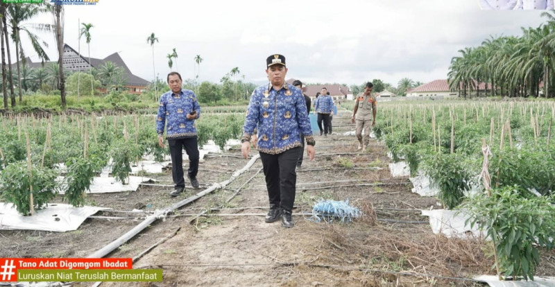 PALAS.WAHANANEWS.CO, Sibuhuan - Bupati Padang Lawas (Palas) Putra Mahkota Alam Hasibuan (PMA) melakukan peninjauan kelahan cabe milik Pemerintah Kabupaten (Pemkab) Palas di samping Kantor Bupati Palas, Rabu (17/12/2025).