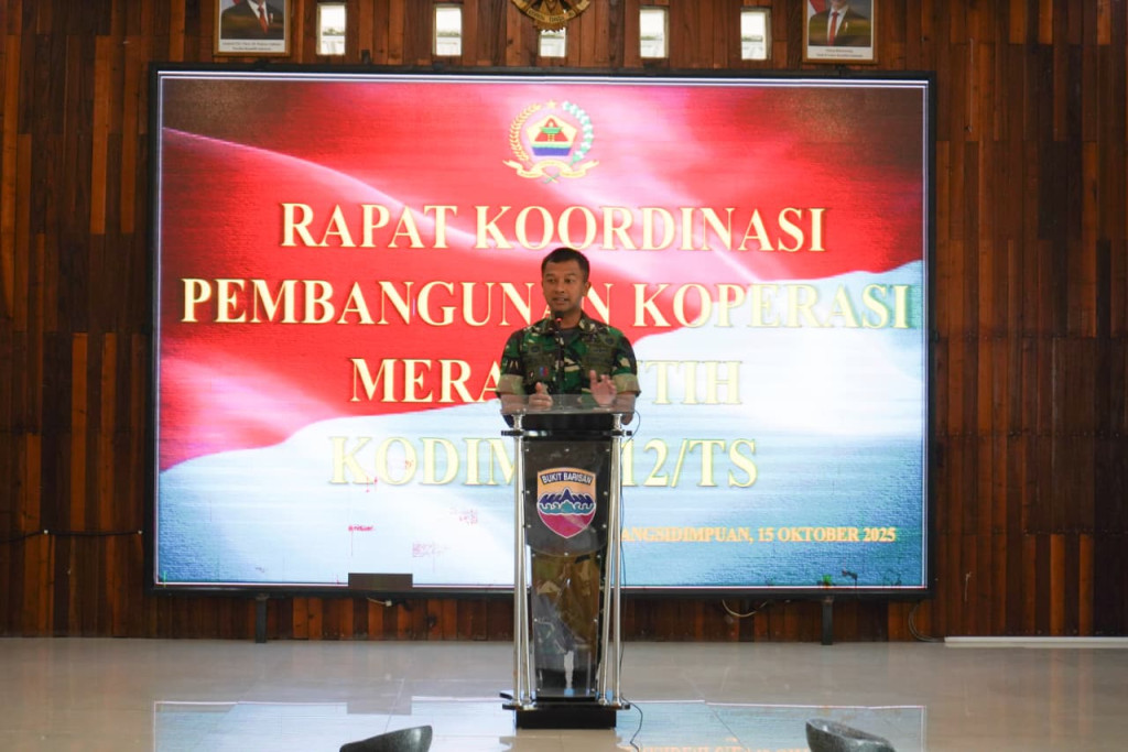 PALUTA.WAHANANEWS.CO, Padang Sidimpuan - Dandim 0212/TS Letkol Arm Delli Yudha Adi Nurcahyo memimpin langsung rapat koordinasi persiapan Ground Breaking Koperasi Desa Kelurahan Merah Putih (KDKMP) yang digelar di Aula Makodim 0212/TS pada Rabu, (15/10/2025).