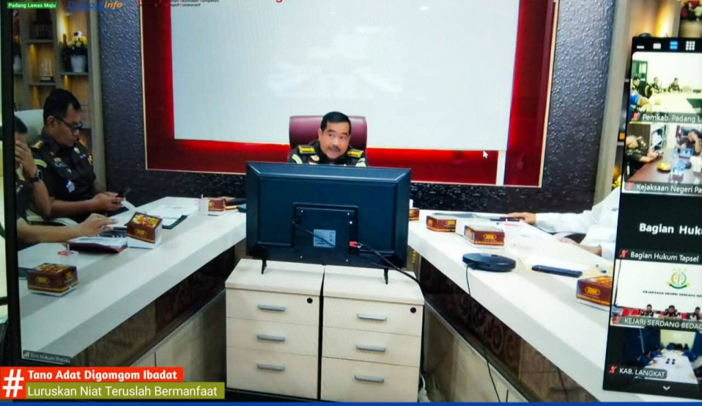 PALAS.WAHANANEWS.CO, Sibuhuan - Pj Sekretaris Daerah Kabupaten Padang Lawas (Sekdakab Palas) Panguhum Nasution bersama Kejaksaan Negeri Palas mendengarkan arahan dari Kejaksaan Tinggi Sumatera Utara (Kajati Sumut) oleh Asisten Tindak Pidana Umum Jurist Presisely Sitepu melalui Zoom Meeting bersama Pemerintah Kabupaten/Kota dan Para Kejari se-Sumut di ruang rapat Pj Sekdakab Palas, Senin (10/11/2025).