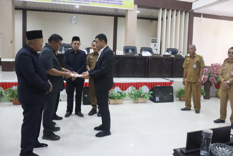 PALUTA.WAHANANEWS.CO, Gunung Tua - Wakil Bupati Padang Lawas Utara (Paluta) Basri Harahap menghadiri Rapat Paripurna DRPD Kabupaten Paluta dalam Rangka Pembicaraan TK.1 Penyampaian Nota Penjelasan Atas Rancangan (KUA) & (PPAS) T.A 2026 di Ruang Sidang DPRD, Senin (03/11/2025).