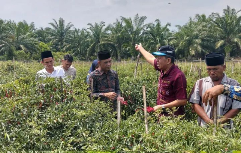 Wabup Basri Harahap tinjau kebun cabai masyarakat.
